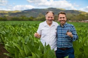 Drew Newman (right) with his father Eric in the tobacco fields of Estelí, Nicaragua