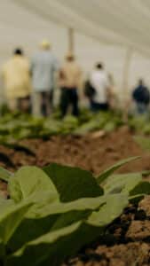Leoncio Cruz, responsable des opérations agricoles, nous montre les plants sous la serre de la ferme expérimentale de 2,5 ha. L’agronome explique qu’il faut 40 à 45 jours pour obtenir des semis vigoureux, « afin qu’ils aient une résistance suffisante une fois repiqués dans les champs ». Il détaille alors les nutriments essentiels qui influencent la fumée finale : l’azote (pour la saveur et la force), le phosphore, le potassium, le calcium et le magnésium (pour la combustion). Sous nos yeux, une partie des plants ont déjà été repiqués ; il s’agit des tabacs de cape, comme la cape Sabana 92 qui recouvre le cigare 120e anniversaire.