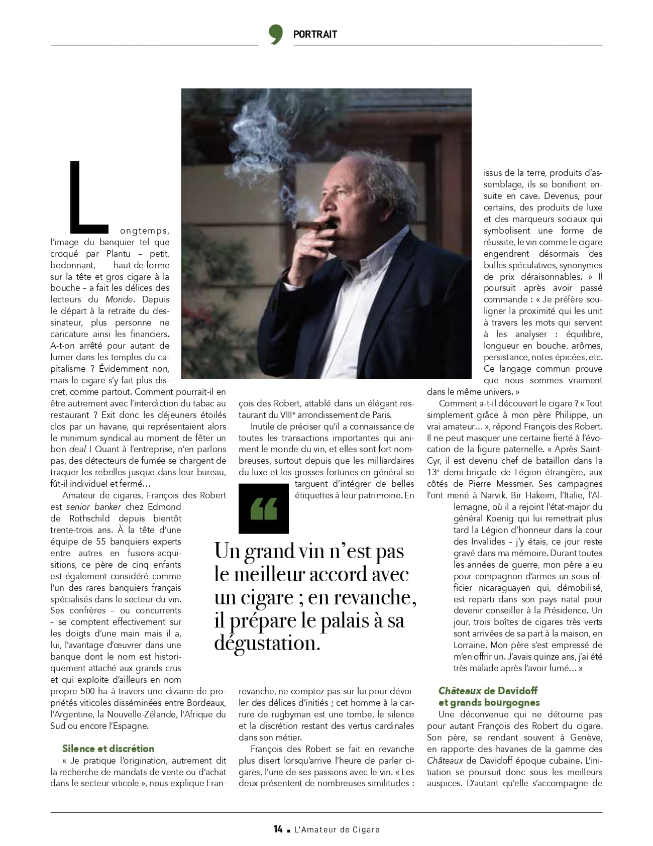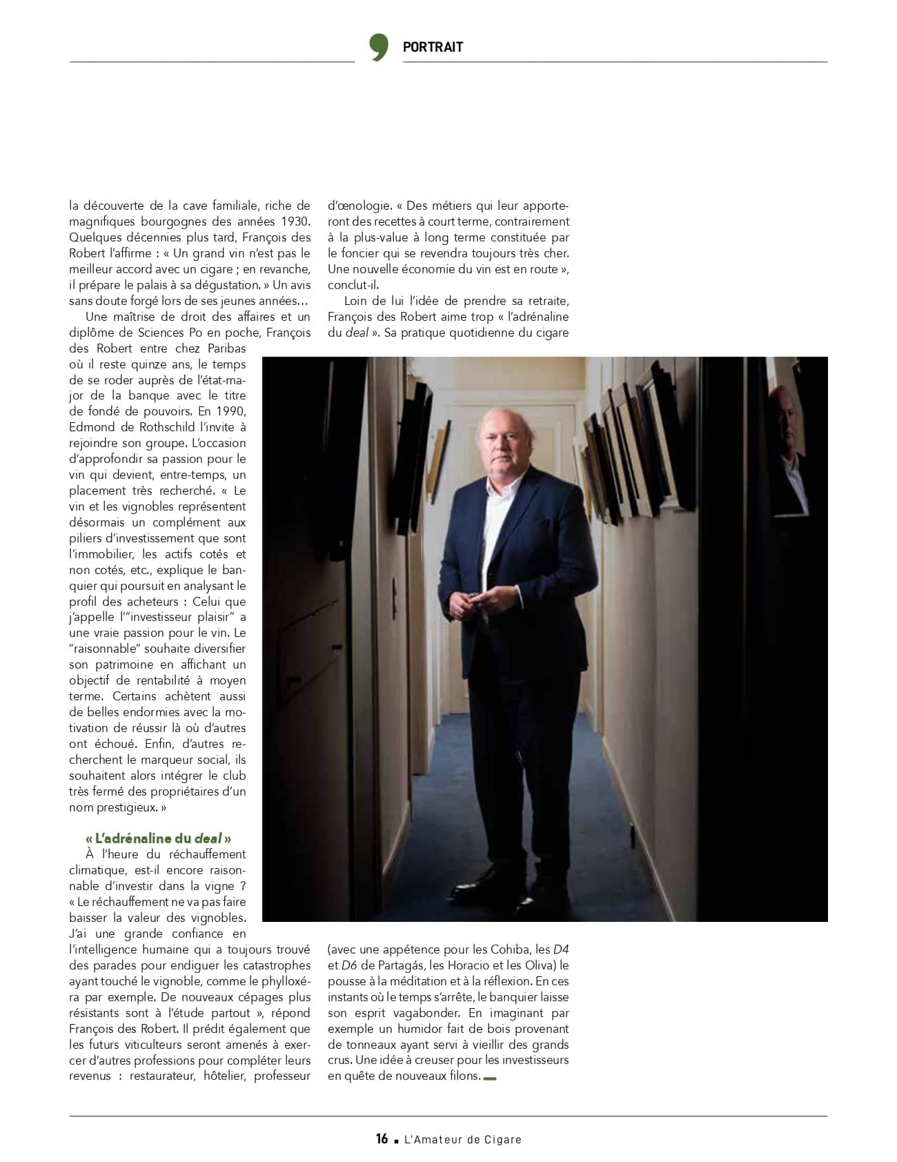 Grand amateur de cigares et de bons vins, François des Robert est décédé le 29 mars dernier à l’âge de 77 ans des suites d’une longue maladie.
