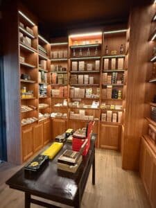 Outre le wak-in humidor et le fumoir, la « maison du havane » de Genève offre une large sélection de vins à déguster dans une salle dédiée.